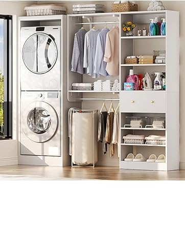 Closet System Set of 2, 4FT Closet Systems with 6 Wood Drawers, 48" Closet Organizer System with 2 Hanging Rods & 2 Shelves, Heavy Duty 48 Inch Walk-in Closet , White (48"L x 15" W x 80" H)