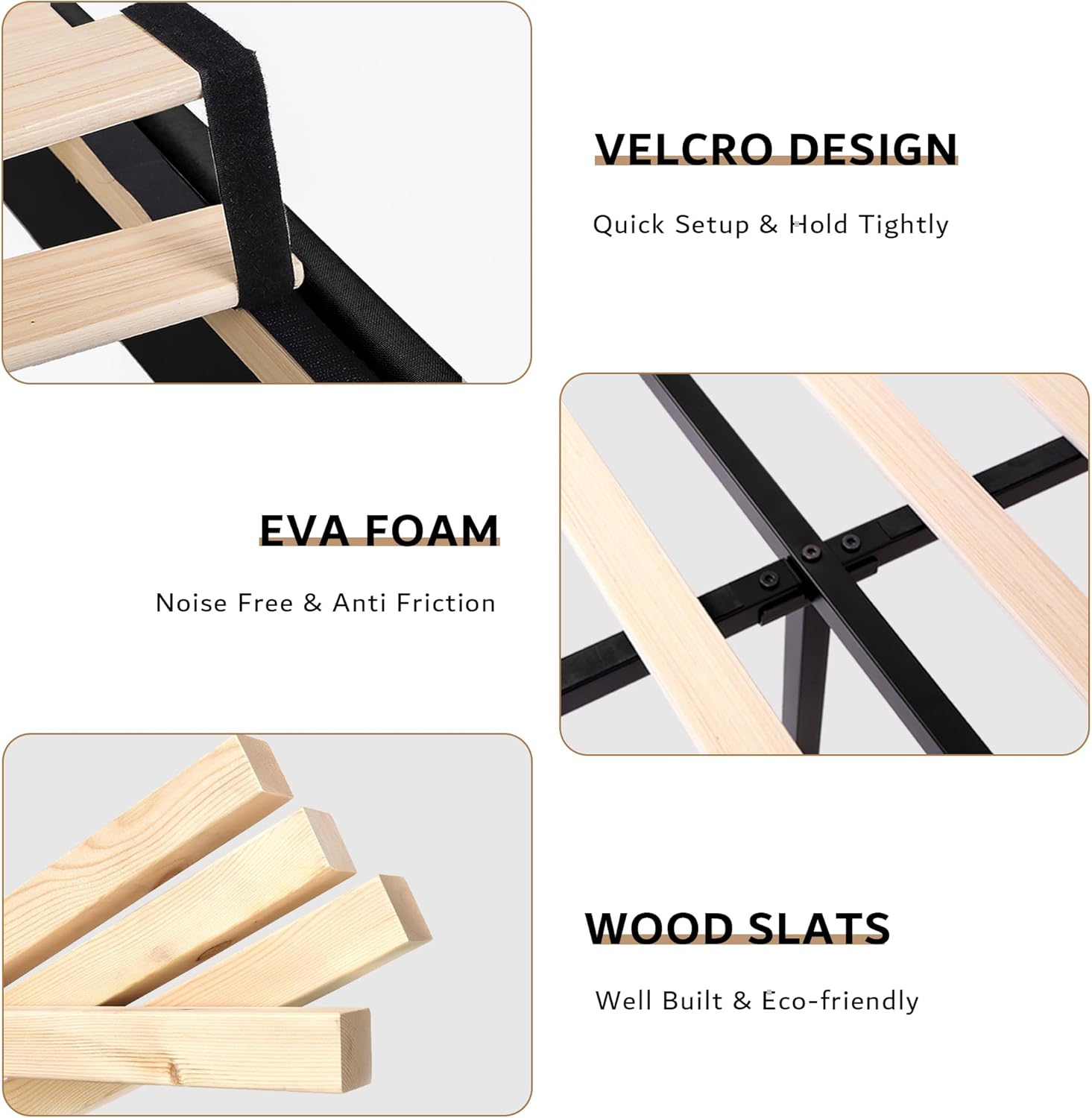 iPormis Full Bed Frame with 16" Comfort Wingback & Charging Station, Upholstered Platform Bed with Button Tufted Storage Headboard, Solid Wood Slats Support, No Box Spring Needed, Black