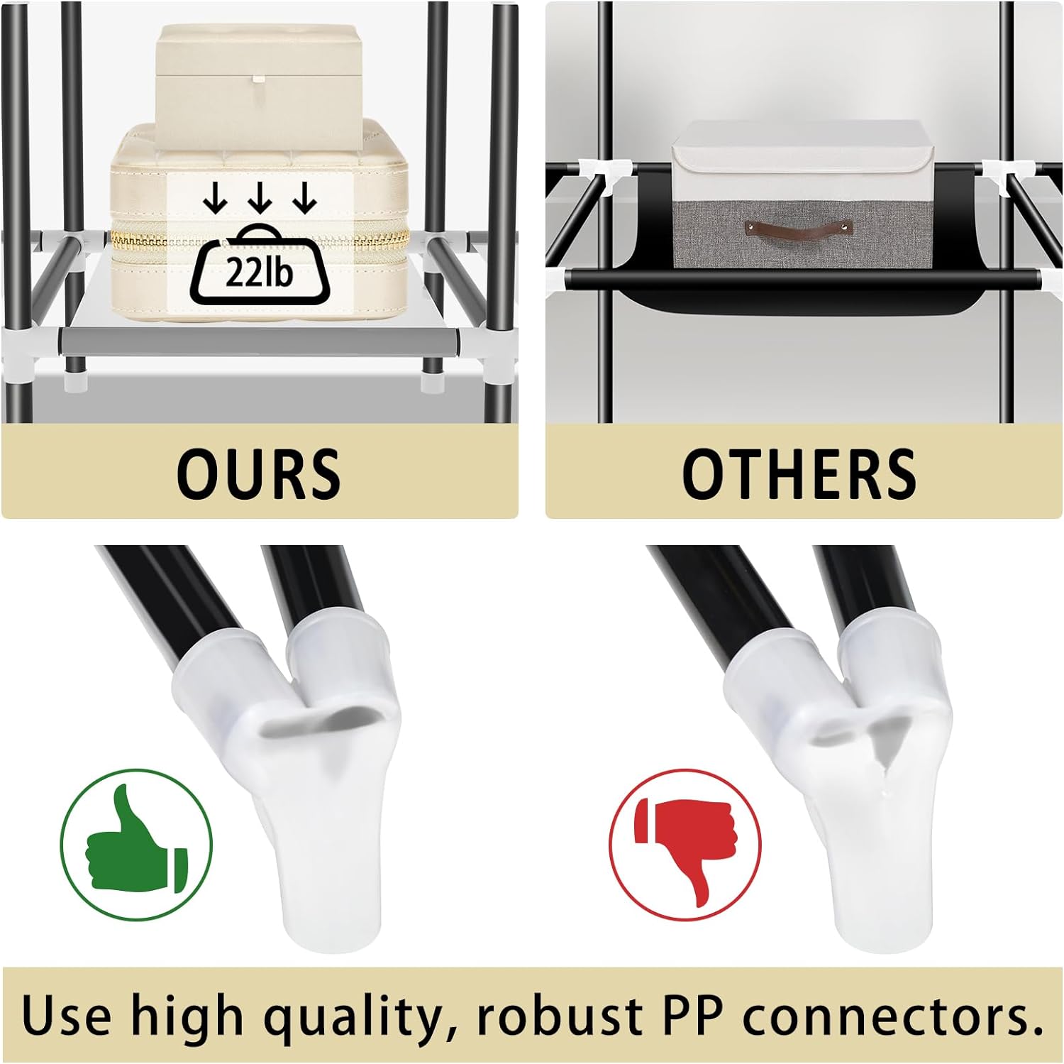 LOKEME Wardrobe Closet,Portable Closet for Bedroom Steel Pipe Diameter 19mm Strong and Sturdy Black Portable Closets for Hanging Clothes with 3 Hanging rods, 6 Storage Shelves and Side Pockets