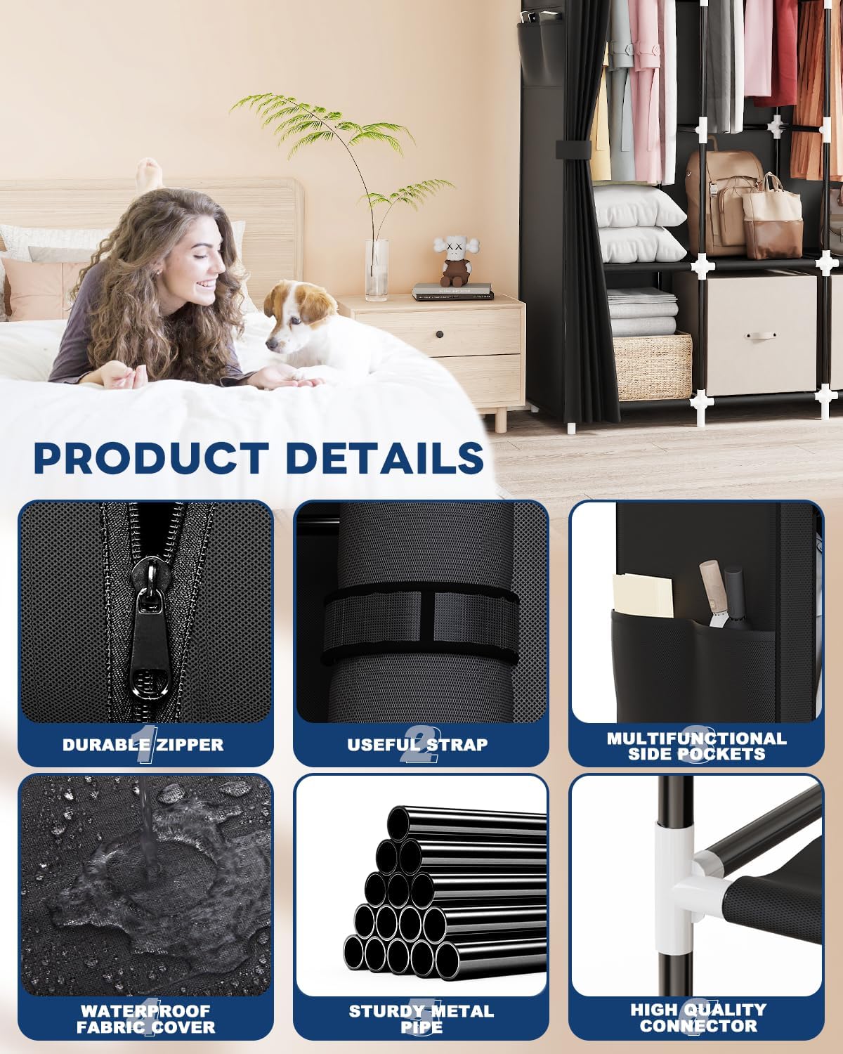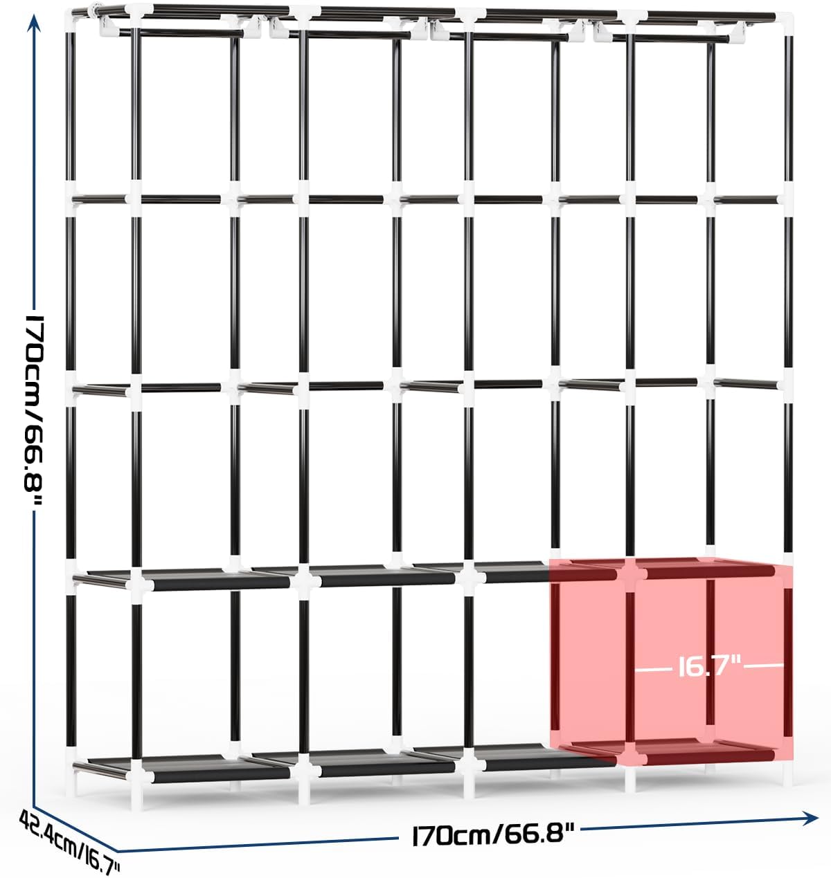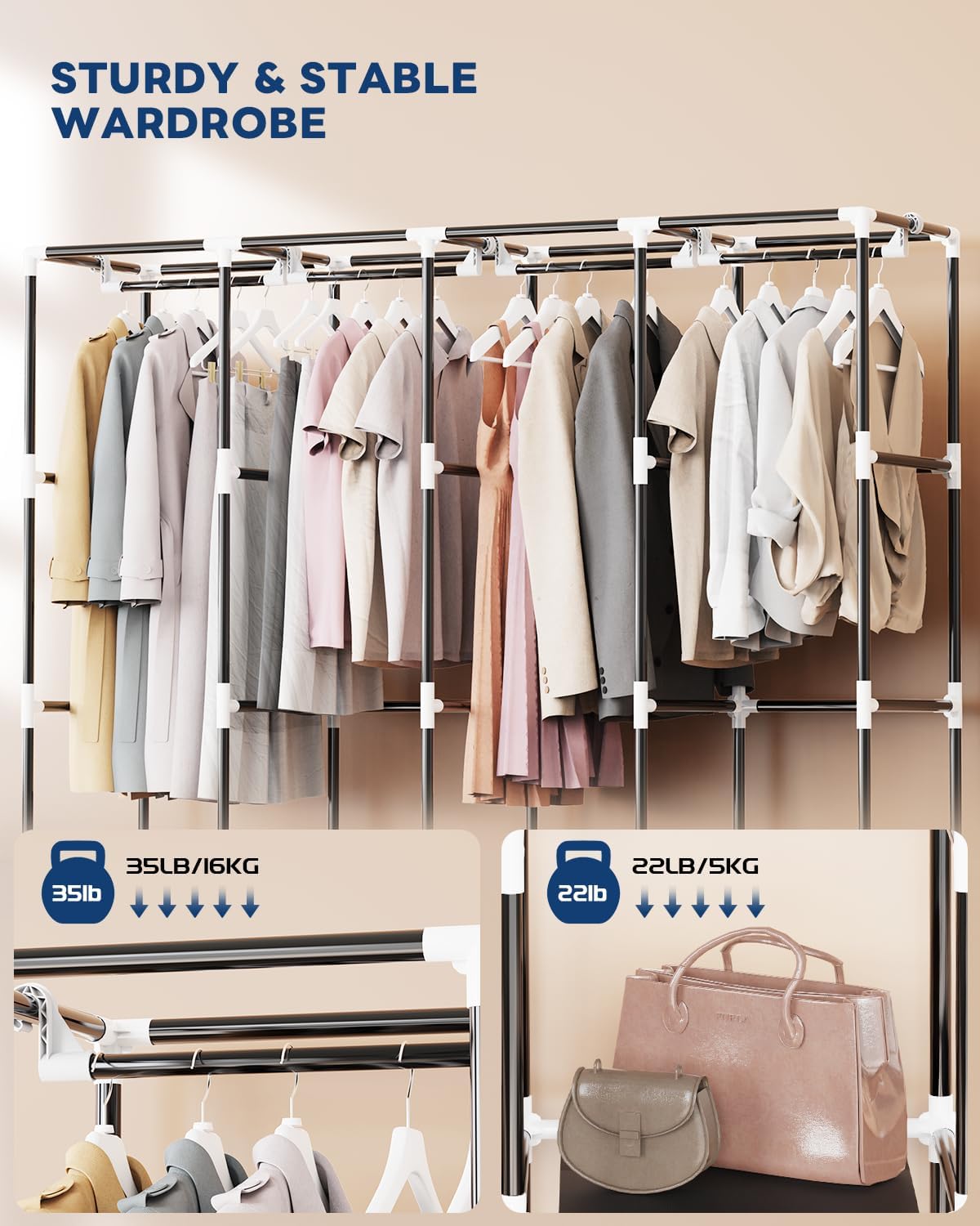 Mavivegue Clothes Organizer with 4 Hanging Rods, Portable Closet Wardrobe, Non-Woven Fabric Cover, Large Capacity Storage for Bedroom and Living Room,Black