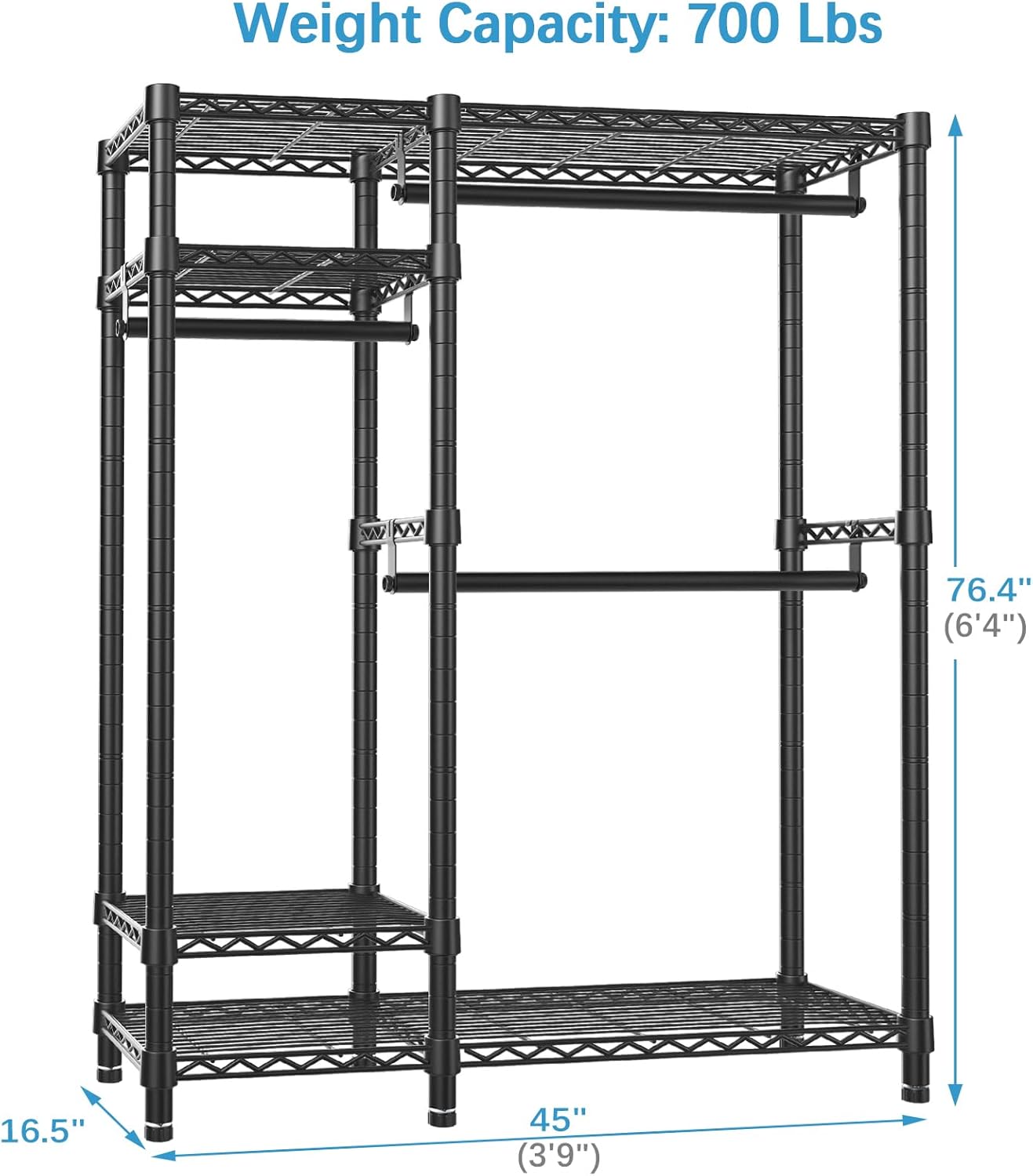 VIPEK V2 Clothes Rack for Hanging Clothes, Heavy Duty Closet Rack with 4 Tiers Wire Shelving & 3 Hanging Rods, Free Standing Closet Wardrobe, 45" Lx16.5 Wx76.4 H, Max Load 700LBS, Black